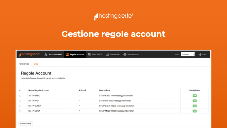 Il servizio prevede l'attivazione di un server cloud VPS esclusivo, configurato come server SMTP con multipli indirizzi IP dedicati ed italiani. Hai la possibilità di personalizzare il tuo SMTP con il tuo marchio per l'invio dei messaggi con indirizzi IP a rotazione (ogni messaggio e-mail viene inviato con un IP differente).