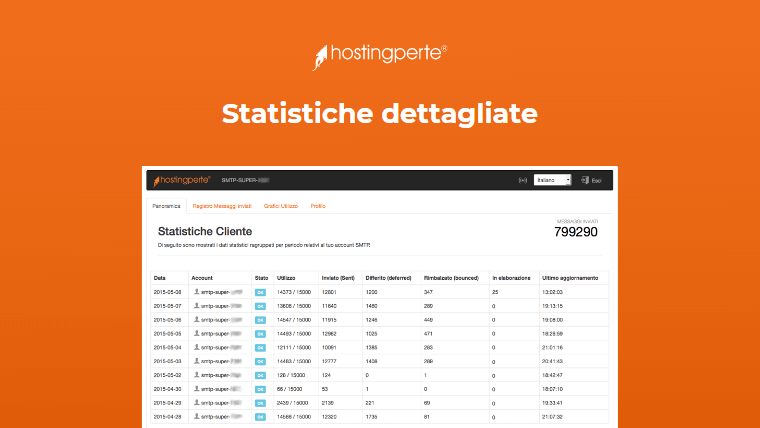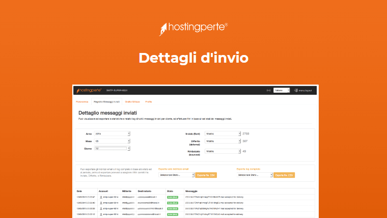 Al fine di garantire un alto tasso di consegna delle e-mail, i nostri server dedicati al servizio SMTP sono configurati con più indirizzi IP dedicati ed italiani, così da consentire l'invio dei messaggi con indirizzi IP a rotazione (ogni messaggio e-mail sarà inviato con un IP differente).